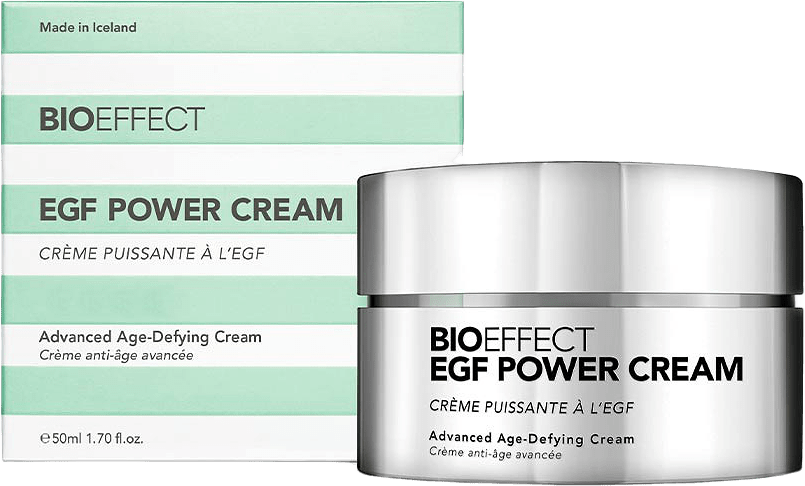 Bioeffect Egf Power Cream är en avancerad och djupt närande ansiktskräm som minskar synliga ålderstecken. Den här unika krämen innehåller kraftfulla växtaktiva ämnen som minskar synbart fina linjer och rynkor, gör huden fastare och mer elastisk samtidigt som den har en mjukgörande effekt. Egf Power Cream innehåller den revolutionerande ingrediensen EGF och andra kraftfulla växtbaserade ingredienser som tillsammans minskar synliga ålderstecken och förbättrar hudens utseende. Perfekt för en torrare eller mognare hudtyp. ·Reducerar fina linjer och rynkor ·Fasthetsgivande och ökar hudens elasticitet ·Närande och mjukgörande effekt EGF (Epidermal Growth Factor) är ett protein som finns naturligt i huden, fungerar genom cell till cell kommunikation. När vi åldras avtar hudens naturliga produktion av EGF, cellkomunikatinen blir långsammare. Bioeffects produkter tillför växtbaserad EGF producerad i kornfrön, som säger åt huden att snabba på sin förnyelseprocess och återställa dess naturliga lyster. Resultatet fastare hud med ökad volym, fina linjer och rynkor reduceras samtidigt som fuktnivåerna ökar i huden och lystern maximeras. Oridonin förbättrar kraftigt hudens utseende genom att sudda ut linjer, öka fastheten och elasticiteten och samtidigt stärka huden. Dessutom arbetar den med huden på ungefär samma sätt som EGF och de två ingredienserna samverkar för maximal effektivitet. Niacinamid, även känt som vitamin B3, förbättrar hudstrukturen, jämnar ut hudtonen och ökar lystern samtidigt som den minskar förekomsten av fina linjer och rynkor. Betaglukan är en lugnande ingrediens som även fungerar som en antioxidant. Den hjälper till att behålla en hälsosam hudbarriär och minimera rodnad och hudkänslighet. EGF Power Cream innehåller även flera vårdande och återfuktande ingredienser. Hyaluronsyra stärker hudens fuktnivåer och minimerar fuktförlust. Hyaluronsyran i EGF Power Cream är otroligt liten och lätt (Super Low Molecular Weight, SLMW) som är särskilt utvecklad för att tränga djupare ner i huden. Sheasmör, skvalan och nattljusolja återfuktar och ger näring åt huden, samtidigt som de är en viktig källa till fettsyror. Tips! För en extra närande och återfuktande effekt använd Egf Power Cream ovanpå ditt Bioeffect serum.