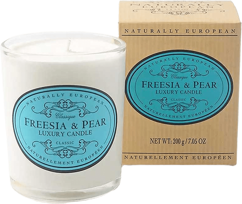 CONTAINS: Butylphenyl methylpropional, alpha-Hexylcinnamaldehyde, alpha-Methyl-3, 4-methylene-dioxyhydrocinnamic aldehyde, delta-1-(2,6,6-Trimethyl-3-cyclohexen-1-yl)-2-buten-1-one, Linalool, 6-Octen-1-ol, 3, 7-dimethyl-, Ethoxymethoxy cyclododecane.Naturally European Freesia & Pear Scented Candle