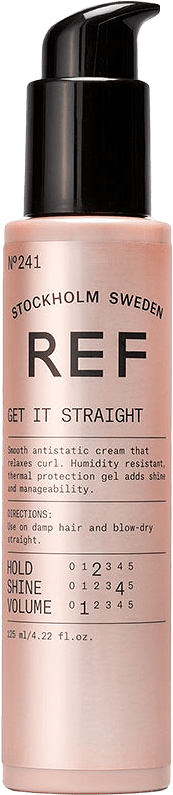 Applicera i fuktigt hår och föna rakt.