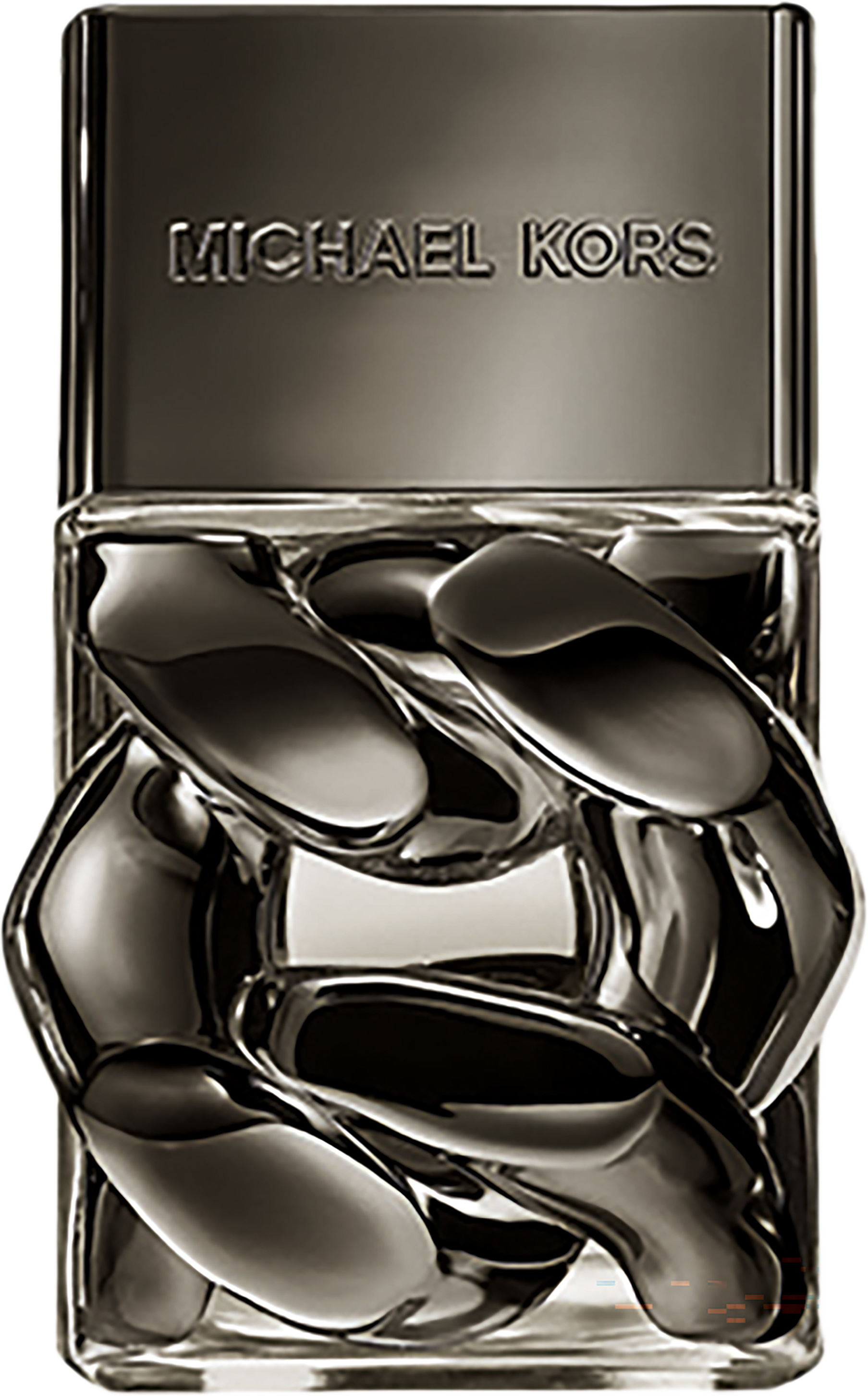 Flaskan är en skulptural statement-piece i rökig mörkbrun finish – en kraftfull kombination av sval, modern elegans och tilltalande värme. Kedjedetaljen, ett av Michael Kors mest ikoniska designelement, symboliserar styrka och förfinad maskulinitet, och gör flaskan lika minnesvärd som själva doften i sig.