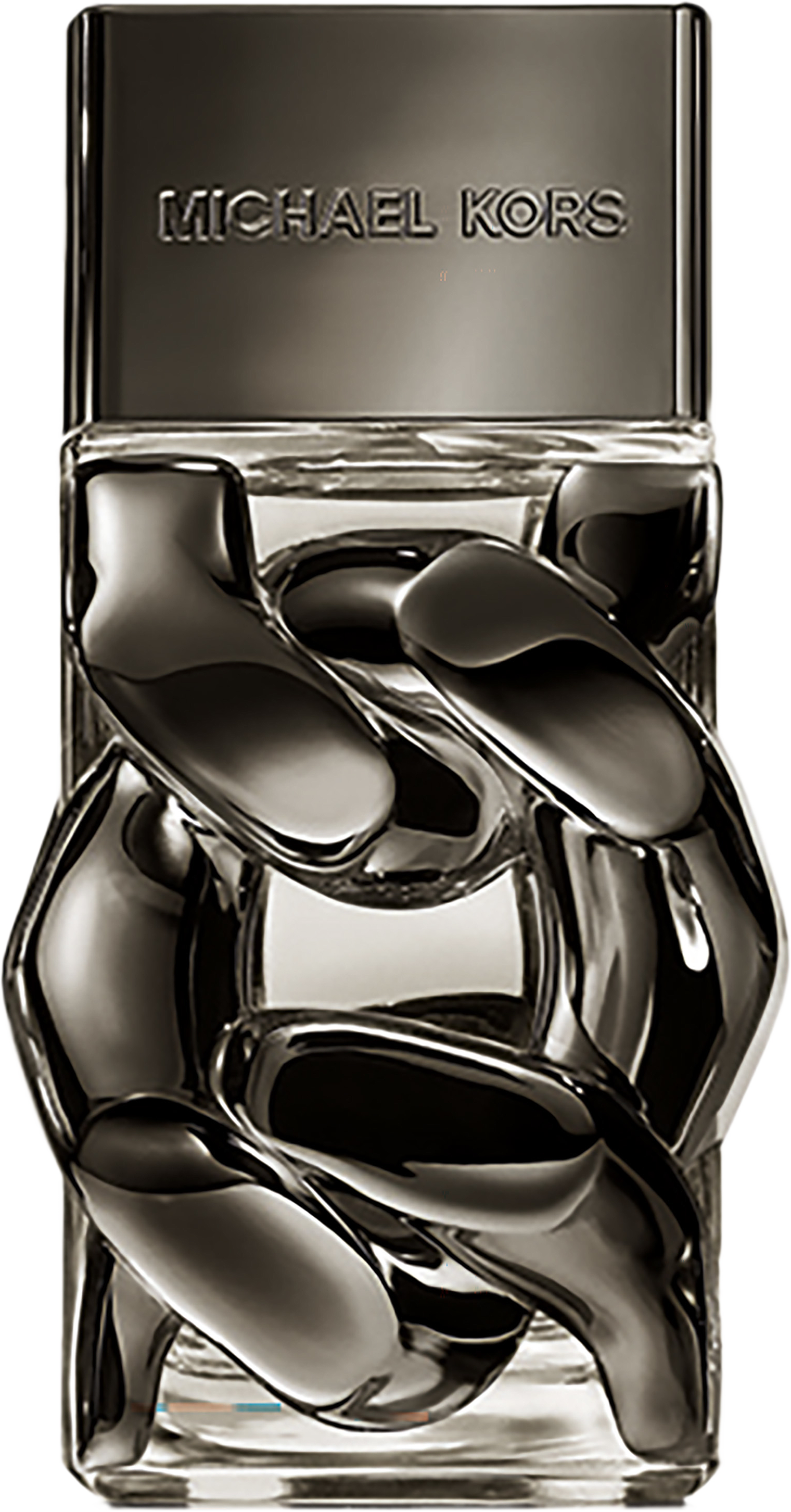 Flaskan är en skulptural statement-piece i rökig mörkbrun finish – en kraftfull kombination av sval, modern elegans och tilltalande värme. Kedjedetaljen, ett av Michael Kors mest ikoniska designelement, symboliserar styrka och förfinad maskulinitet, och gör flaskan lika minnesvärd som själva doften i sig.