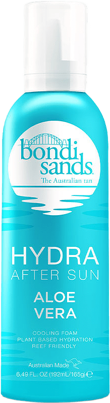 AQUA (WATER), DIMETHYL ETHER, BUTANE, ISOBUTANE, ALOE BARBADENSIS EXTRACT, PROPYLENE GLYCOL, GLYCERIN, PHENYL TRIMETHICONE, HYDROXYETHYLCELLULOSE, DICAPRYLYL CARBONATE, COCOGLYCERIDES, POLYSORBATE 20, PARFUM (FRAGRANCE), TOCOPHERYL ACETATE, CETEARETH-20, CETEARYL ALCOHOL, PANTHENOL, PROPANE, CETEARETH-12, CETYL PALMITATE, GLYCERYL STEARATE, PHENOXYETHANOL, SODIUM CARRAGEENAN, POTASSIUM SORBATE, SODIUM BENZOATE, SODIUM CHLORIDE, GERANIOL, HYDROXYCITRONELLAL.Bondi Sands Hydra After Sun Aloe Vera Foam
