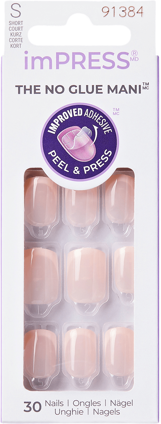 FÖRBEREDELSE: Före applicering, hitta rätt storlek för varje nagel. Rikta in nagelflikarna mot dina nagelband och kontrollera sidorna för korrekt passform. Om du är mellan TVÅ storlekar, ta den mindre, inte större. Tvätta händerna med tvål och vatten och torka ordentligt. Använd den medföljande nagelbandspinnen för att försiktigt trycka tillbaka överflödig hud. Torka av naglarna med den medföljande prep-dynan för att rengöra naglarna för bättre vidhäftning. APPLICERING: Dra av baksidan från nageln och tryck försiktigt på din naturliga nagel, mitten och sidorna samtidigt. Håll i 30 sekunder. Upprepa för varje nagel. Vänta minst en timme med att blöta händerna eller fila naglar om så önskas. BORTTAGNING: Tvinga eller dra inte bort naglarna. Blötlägg naglarna i varmt vatten med tvål eller olja. När vattnet inte längre är varmt, dra försiktigt bort naglarna från sidan. Om du behöver mer hjälp, blötlägg i aceton. Torka av naglarna för att få bort limmet.