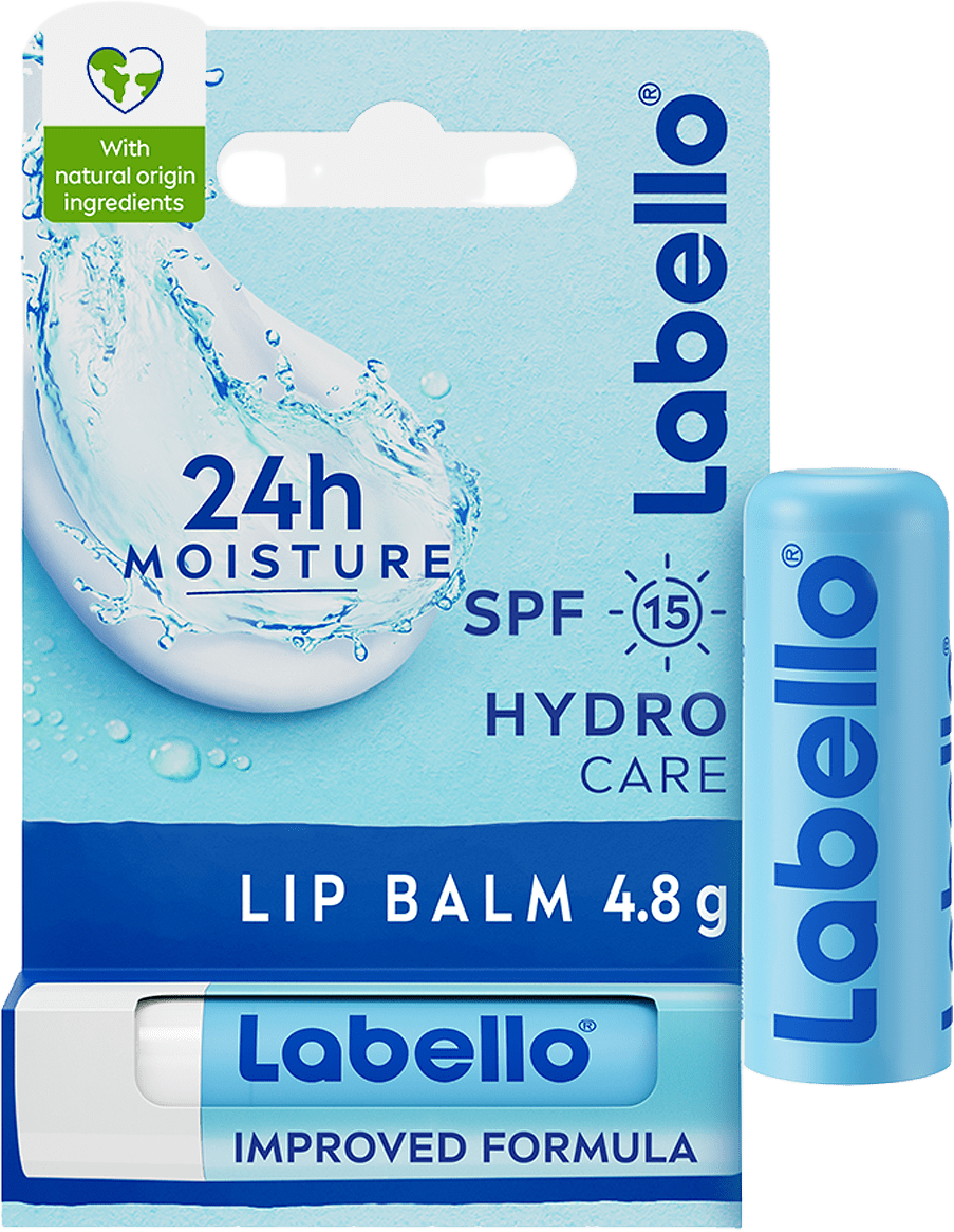 Fräsch känsla på dina läppar? Med Labello Hydro Care Caring Lip Balm skyddas dina läppar mot kyla, vind och torr luft. Detta läppcerat kommer med en ny förbättrad och mer effektiv formula gjord med naturliga ingredienser och fri från mineraloljor. Den återfuktande formulan med etiskt framställt sheasmör och naturliga oljor berikade med vitaminer har en behagligt mjuk konsistens som omedelbart smälter in i dina läppar och håller dem återfuktade i 24 timmar. Kliniskt testad. Läppbalsamet med SPF 15 skyddar dina läppar mot solens skadliga effekter. Njut av en behagligt fräsch känsla och mjuka läppar hela dagen, varje dag! Dermatologiskt testad.