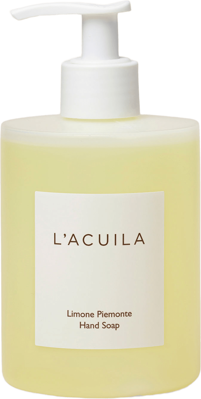 Aqua, Sodium Laureth Sulfate, PEG-4 Rapeseedamide, Glycerin, Sodium Chloride, Cocamidopropyl Betaine, Polysorbate 20, Parfum, Biosaccharide Gum-1, Sodium Cocoyl Glutamate, Phenoxyethanol, Ethylhexylglycerin, Sodium Sulfate, Citric Acid, Limonene, Geraniol, Citral, Octadecyl Di-T-Butyl-4-hydroxyhydrocinnamate, CI 19140L´Acuila Limone Piemonte Hand Soap