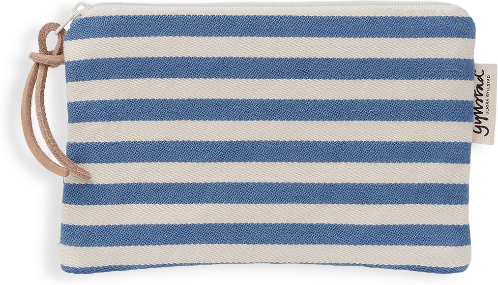 Den här lilla makeup-väskan är fodrad och sydd av ekologisk GOTS-certifierad bomullsväv med fin struktur. Dragkedja med rem i naturgarvat läder. Design Ulrika Gyllstad. Tyg vävt i Sverige, producerad inom EU. Storlek L 18 x H 11 cm.