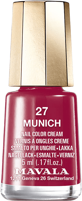 Butyl Acetate, Ethyl Acetate, Nitrocellulose, Adipic Acid/Neopentyl Glycol/Trimellitic Anhydride Copolymer, Dipropylene Glycol Dibenzoate, Isopropyl Alcohol, Stearalkonium Bentonite, Acrylates Copolymer, Aluminium Hydroxide, Triethoxycaprylylsilane, Mica, Barium Sulfate, Tin Oxide, Titanium.Mavala Minilack