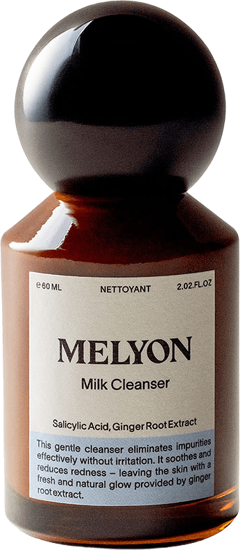 Tvätta händerna och applicera tre pumpar med rengöringsmjölken på fingertopparna och applicera på fuktig hud varje morgon och kväll. Massera ansikte och hals med cirkulära rörelser. Låt vara i 30 sekunder och tvätta sedan ansiktet med ljummet vatten. Följ upp med Melyon Detox Serum och Melyons dag- eller nattkräm.