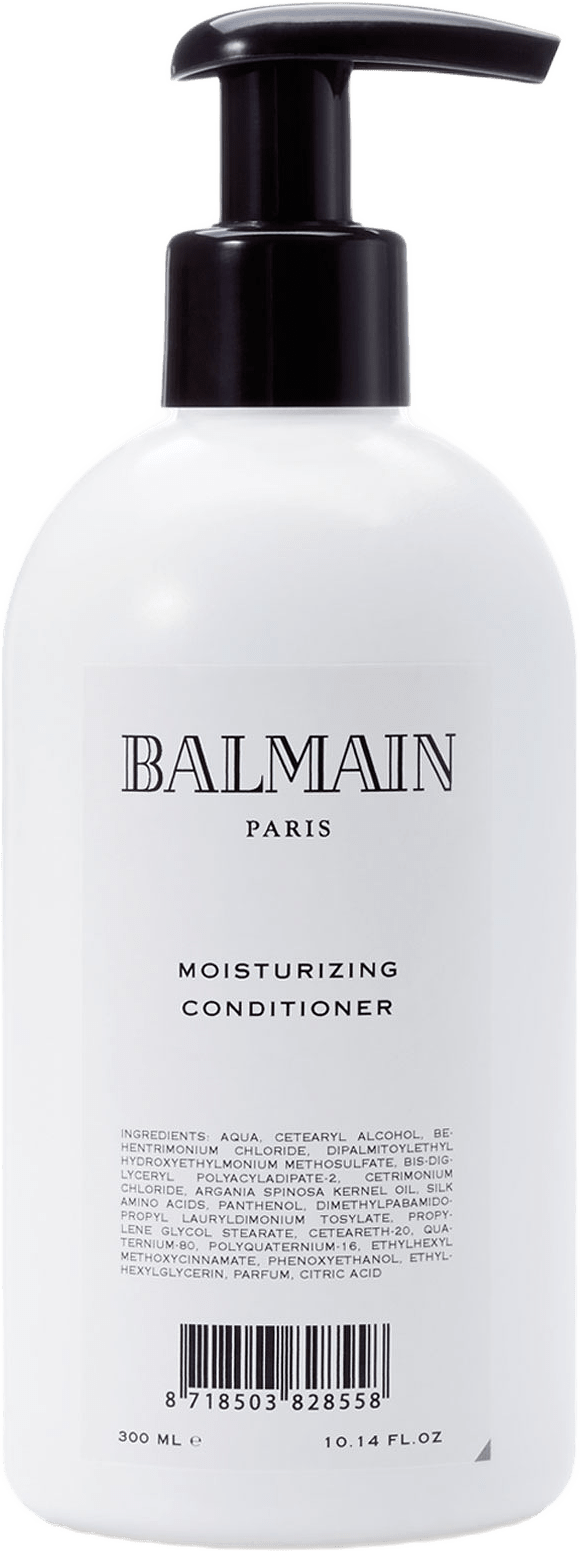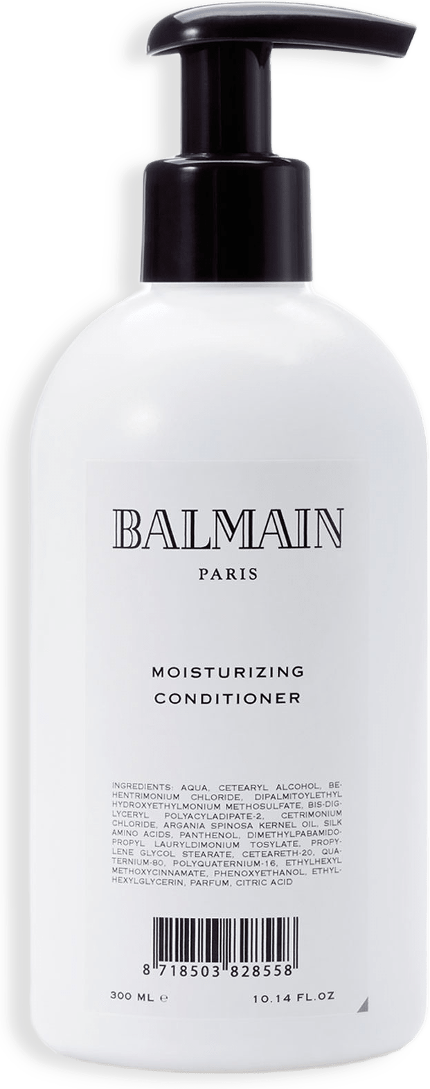Aqua, Cetearyl Alcohol, Behentrimonium Chloride, Glycerin, Isopropyl Myristate, Amodimethicone/Morpholinomethyl Silsesquioxane Copolymer, Stearamidopropyl Dimethylamine, Argania Spinosa Kernel Oil, Silk mino Acids, Panthenol, Polyquaternium-53, Dimethylpabamidopropyl Lauryldimonium Tosylate, Ethylhexyl Methoxycinnamate, Polyquaternium-10, Trideceth-5, Parfum, Hydroxyethylcellulose, Phenoxyethanol, Ethylhexylglycerin, Lactic AcidBALMAIN Paris Hair Couture Moisturizing Conditioner