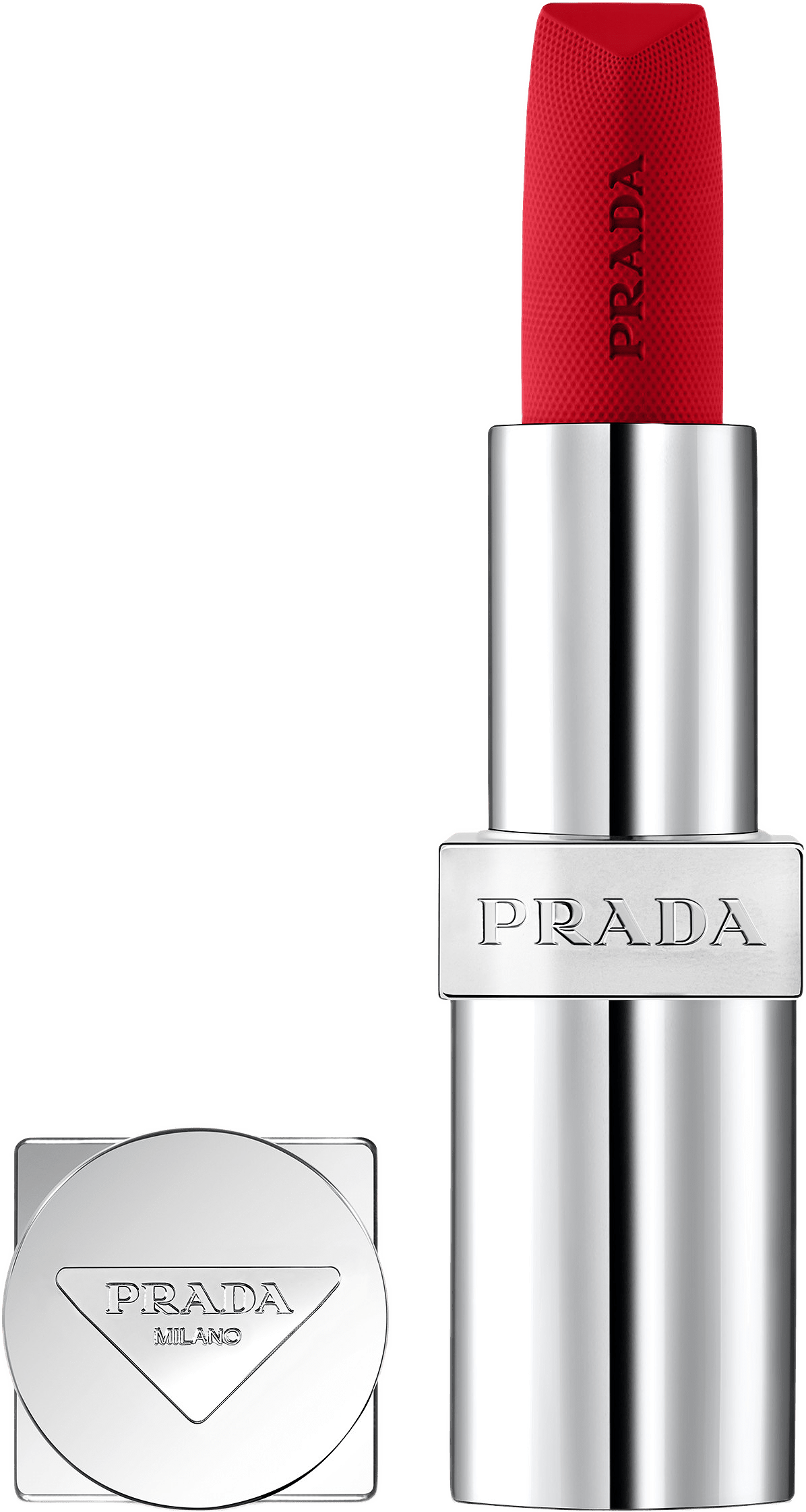 MÅNGSIDIGT LÄPPSTIFT MED MJUK, DIFFUS MATT FINISH Prada Monochrome Soft Matte avslöjar mjuka, diffusa färger som påminner om lystern och mångsidigheten hos Pradas ikoniska Re-Nylon-tyg. Detta läppstift ger justerbar, byggbar täckning och en mjuk, diffus matt finish som varar i upp till 6 timmar* med minimal känsla på läpparna. Soft Matte-serien kommer i en palett av lysande matta nyanser som smickrar alla hudtyper och är formulerade med en vit bas och endast tre rena pigment för att påminna om lystern hos Prada Re-Nylon-tyget. Tack vare den diffusa finishen och den byggbara täckningen kan läppstiftet även appliceras på kinderna för en naturlig rouge-effekt. TEKNOLOGI & INGREDIENSER Formulerad med Micro-Fit™-teknik och berikad med bifidus-extrakt och jojobaolja, glider Prada Monochrome-läppstift sömlöst och smälter samman med läpparna samtidigt som de känns viktlösa. Läpparnas kvalitet ser synbart förbättrad ut och läppbarriären känns skyddad och stärkt över tid. BRUKSANVISNING Den triangulära stiftformen säkerställer enkel applicering genom god kontroll och definition, vilket ger intensiva pigment med ett enda drag och en sofistikerad finish. För diffusa matta läppar, välj Prada Monochrome Soft Matte. Håll i läppstiftets fyrkantiga Prada-ring för kontrollerad applicering. Börja med amorbågen och fyll sedan i läpparna. Färgen är superbyggbar. Som ett tips kan du blanda ut det på kinderna för en naturlig rouge-effekt. Lär dig hur du fyller på din Prada Monochrome Soft Matte i två enkla steg: Lär dig hur du fyller på din Prada Monochrome Soft Matte i två enkla steg: 1. Håll i Pradas fyrkantiga ring, klicka ut påfyllningen. 2. Klicka i den nya påfyllningen. *konsumenttest på 204 individer