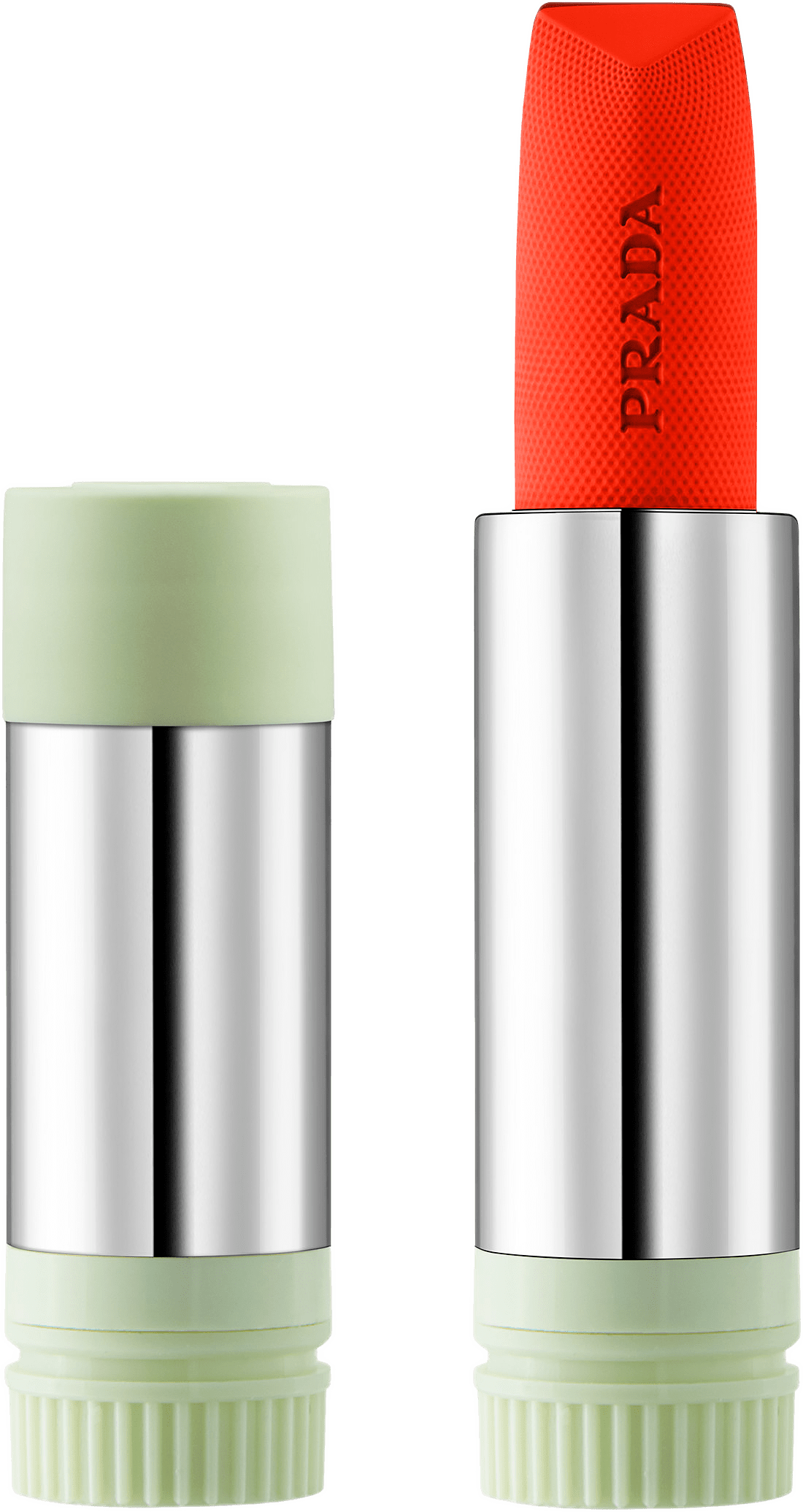 Den triangulära stiftformen säkerställer enkel applicering genom god kontroll och definition, vilket ger intensiva pigment med ett enda drag och en sofistikerad finish. För diffusa matta läppar, välj Prada Monochrome Soft Matte. Håll i läppstiftets fyrkantiga Prada-ring för kontrollerad applicering. Börja med amorbågen och fyll sedan i läpparna. Färgen är superbyggbar. Som ett tips kan du blanda ut den på kinderna för en naturlig rouge-effekt. Lär dig hur du fyller på din Prada Monochrome Soft Matte i två enkla steg: 1. Håll i Pradas fyrkantiga ring, klicka ut påfyllningen. 2. Klicka i den nya påfyllningen.