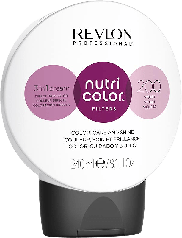 AQUA/WATER/EAU, PROPYLENE GLYCOL, CETYL ALCOHOL, DICETYLDIMONIUM CHLORIDE, DIMETHICONE, STEARAMIDOPROPYL DIMETHYLAMINE, BEHENTRIMONIUM CHLORIDE, CETEARYL ALCOHOL, CETRIMONIUM CHLORIDE, CITRIC ACID, DICAPRYLYL CARBONATE, DIMETHICONOL, ETHYLHEXYLGLYCERIN, HYDROXYETHYLCELLULOSE, ISOPROPYL ALCOHOL, LAURYL GLUCOSIDE, PANTHENOL, POLYQUATERNIUM-37, PARFUM (FRAGRANCE), BENZYL ALCOHOL, BASIC VIOLET 2, HC BLUE NO. 16. B00889.Revlon Nutri Color Fillers 200 Violet