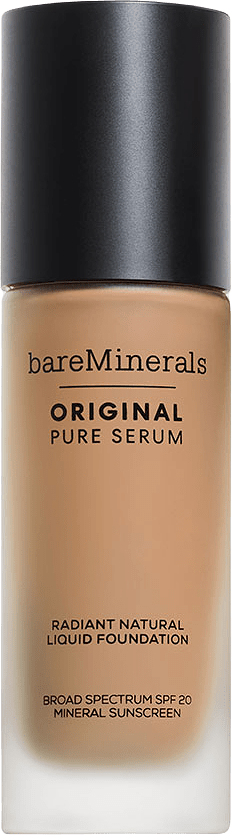 Active ingredient: Titanium Dioxide 11% Inactive ingredients: CAPRYLIC/CAPRIC TRIGLYCERIDE, COCONUT ALKANES, MICA, SILICA, STEARALKONIUM HECTORITE, COCO-CAPRYLATE/CAPRATE, GLYCERIN, LECITHIN, JOJOBA ESTERS, PROPYLENE CARBONATE, PHENOXYETHANOL, TOCOPHERYL ACETATE, BUTYLENE GLYCOL, WATER, MAGNESIUM ASCORBYL PHOSPHATE, NYMPHAEA ALBA FLOWER EXTRACT, SODIUM HYALURONATE. MAY CONTAIN: TITANIUM DIOXIDE (CI 77891), IRON OXIDES (CI 77491, CI 77492, CI 77499).bareMinerals Original Pure Serum Liquid Foundation