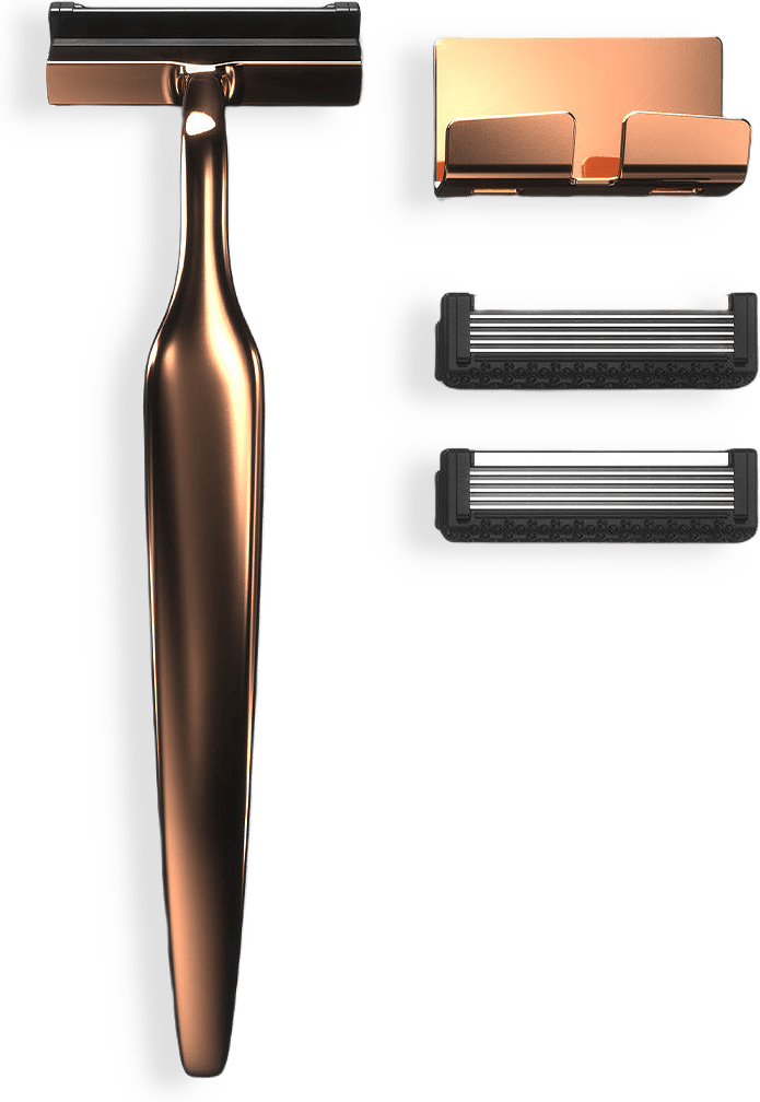 Ger dig den mjukaste, närmaste och bekvämaste rakningen du någonsin har haft. Melle's Razor Kit är den ultimata kombinationen av hållbar elegans och funktionalitet. Våra rakhyvlar är tillverkade av zink och är 100% återvinningsbar. Designen, tillsammans med vikten, ger dig ett perfekt grepp och bladen är konstruerade för att undvika irriterad hud. Använd väggfästet emellan dina rakningar för att skydda dina blad och få dem att hålla längre. Kitet innehåller 1 handtag, 1 matchande väggfäste och 2 rakblad.