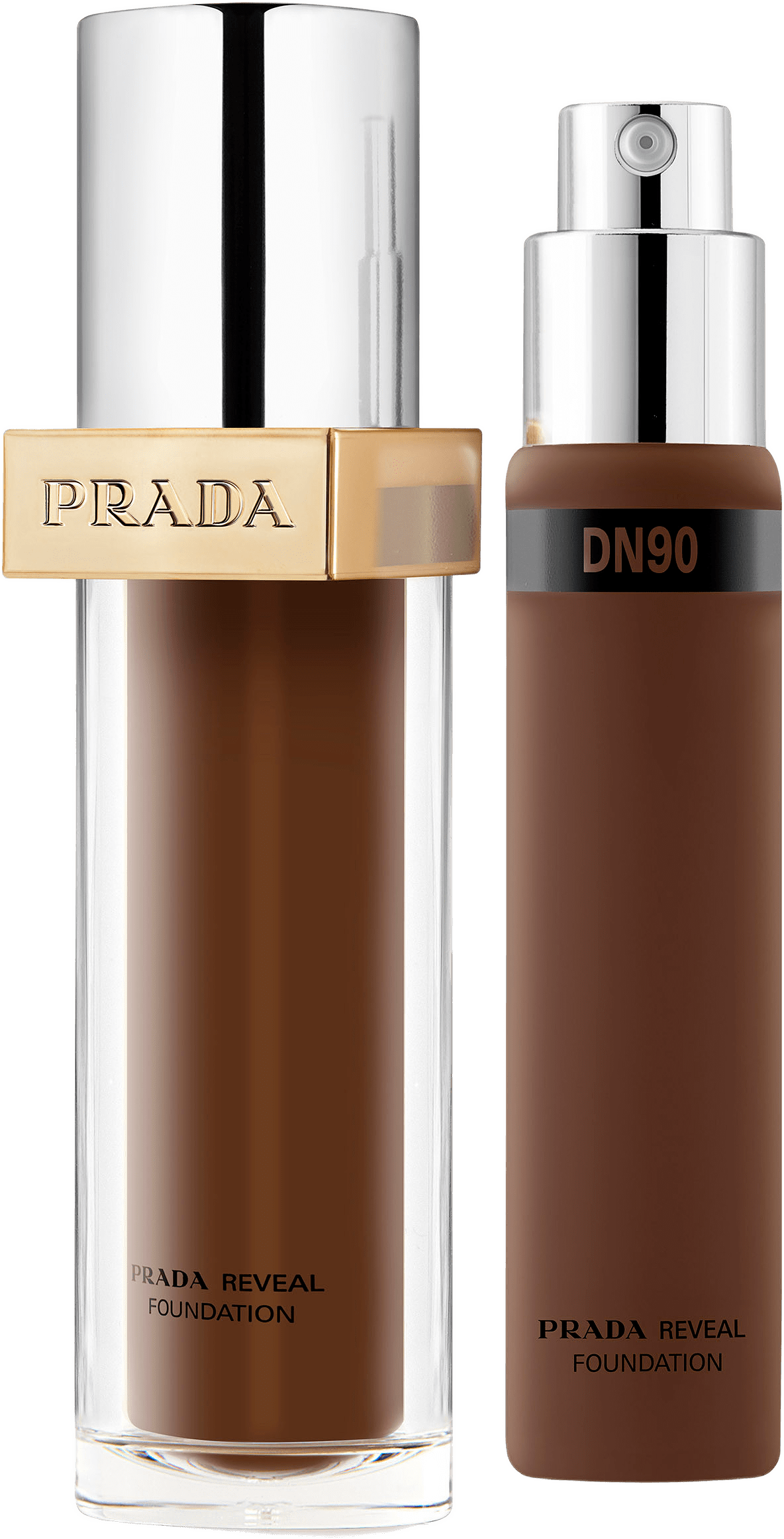 BRUKSANVISNING För optimalt resultat, förbered din hud med Prada Augmented Skin The Cream. Applicera Prada Reveal Foundation från ansiktets mitt och blanda utåt. En pump ger lätt till medelhög täckning, två pumpar ger medelhög till full täckning. Använd en borste för precision och medelhög till full täckning. Använd en beautyblender för att arbeta in foundation i huden och få en naturlig finish med medelhög täckning. Applicera snabbt med fingertopparna och blanda utåt för en ""andra hud""-känsla. HUR MAN PÅFYLLER 1. Ta bort Prada Reveal Foundation flasklocket. 2. Dra i foundationpumpen och skjut ut foundationflaskan ur hylsan 3. Sätt i den nya refillflaskan