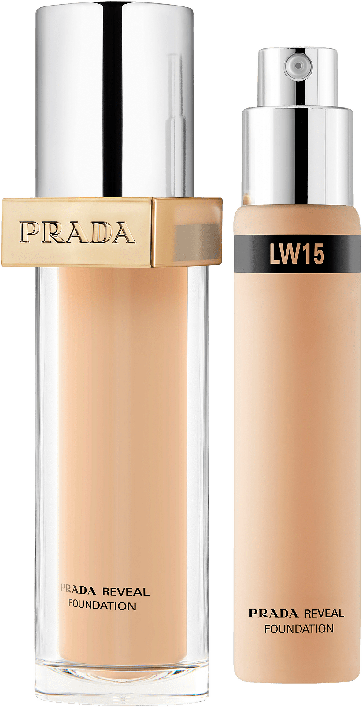 BRUKSANVISNING För optimalt resultat, förbered din hud med Prada Augmented Skin The Cream. Applicera Prada Reveal Foundation från ansiktets mitt och blanda utåt. En pump ger lätt till medelhög täckning, två pumpar ger medelhög till full täckning. Använd en borste för precision och medelhög till full täckning. Använd en beautyblender för att arbeta in foundation i huden och få en naturlig finish med medelhög täckning. Applicera snabbt med fingertopparna och blanda utåt för en ""andra hud""-känsla. HUR MAN PÅFYLLER 1. Ta bort Prada Reveal Foundation flasklocket. 2. Dra i foundationpumpen och skjut ut foundationflaskan ur hylsan 3. Sätt i den nya refillflaskan