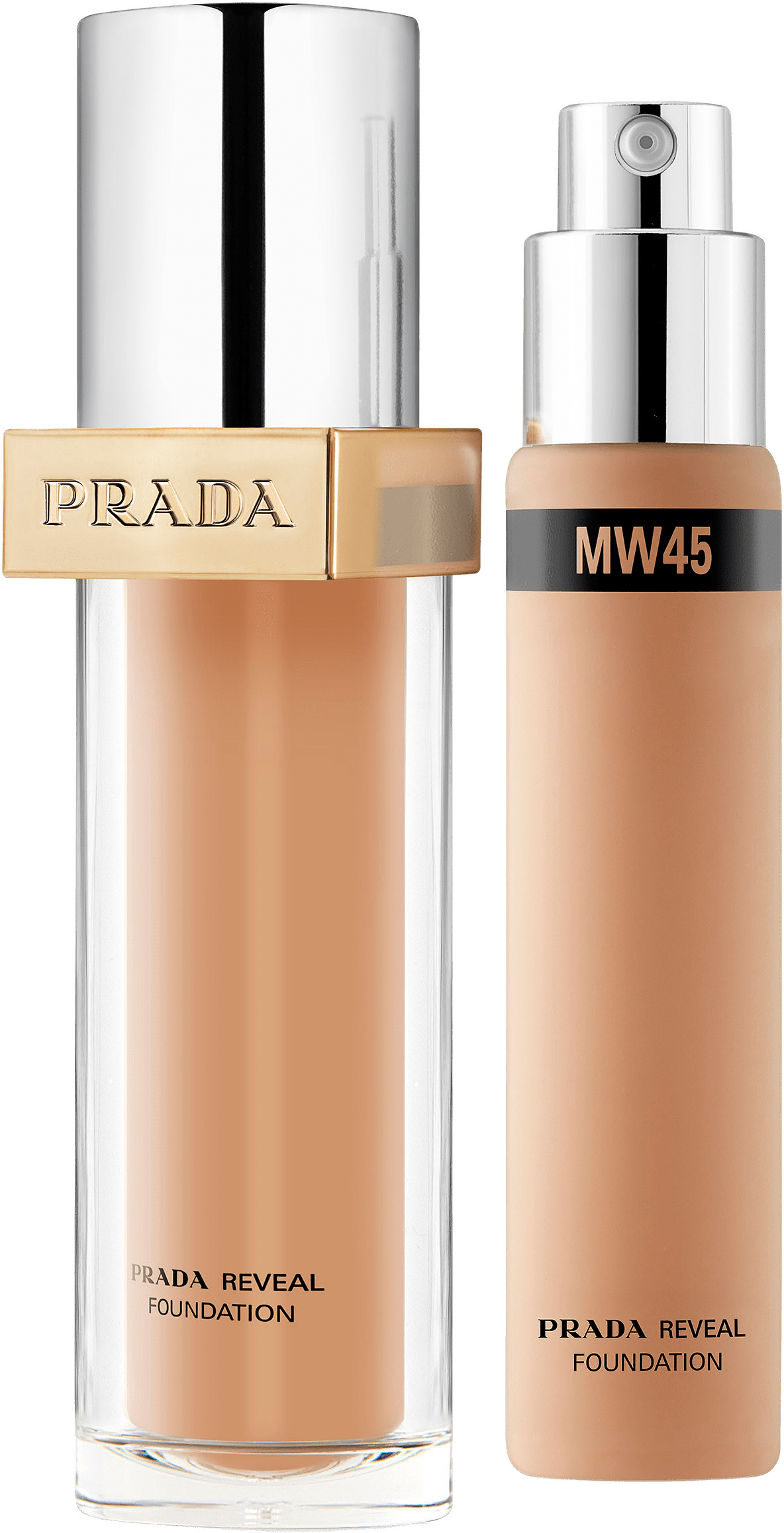 BRUKSANVISNING För optimalt resultat, förbered din hud med Prada Augmented Skin The Cream. Applicera Prada Reveal Foundation från ansiktets mitt och blanda utåt. En pump ger lätt till medelhög täckning, två pumpar ger medelhög till full täckning. Använd en borste för precision och medelhög till full täckning. Använd en beautyblender för att arbeta in foundation i huden och få en naturlig finish med medelhög täckning. Applicera snabbt med fingertopparna och blanda utåt för en ""andra hud""-känsla. HUR MAN PÅFYLLER 1. Ta bort Prada Reveal Foundation flasklocket. 2. Dra i foundationpumpen och skjut ut foundationflaskan ur hylsan 3. Sätt i den nya refillflaskan