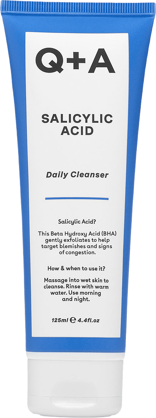 Q+A Salicylic Acid Daily Cleanser är en ansiktsrengöring som skonsamt rengör huden från orenheter och tilltäppta porer. Samtidigt bevaras den naturliga oljebalansen i huden och utan att störa den känsliga hudbarriären. Berikad med salicylsyra som exfolierar huden och hjälper till att minimera uppkomsten av porer och minska utslag. Ansiktsrengöringen har en kombination av allantoin för att lugna huden, och betain för att bibehålla fukt och förhindra torrhet, vilket gör detta till en perfekt daglig ansiktsrengöring som håller huden mjuk, klar och fräsch.