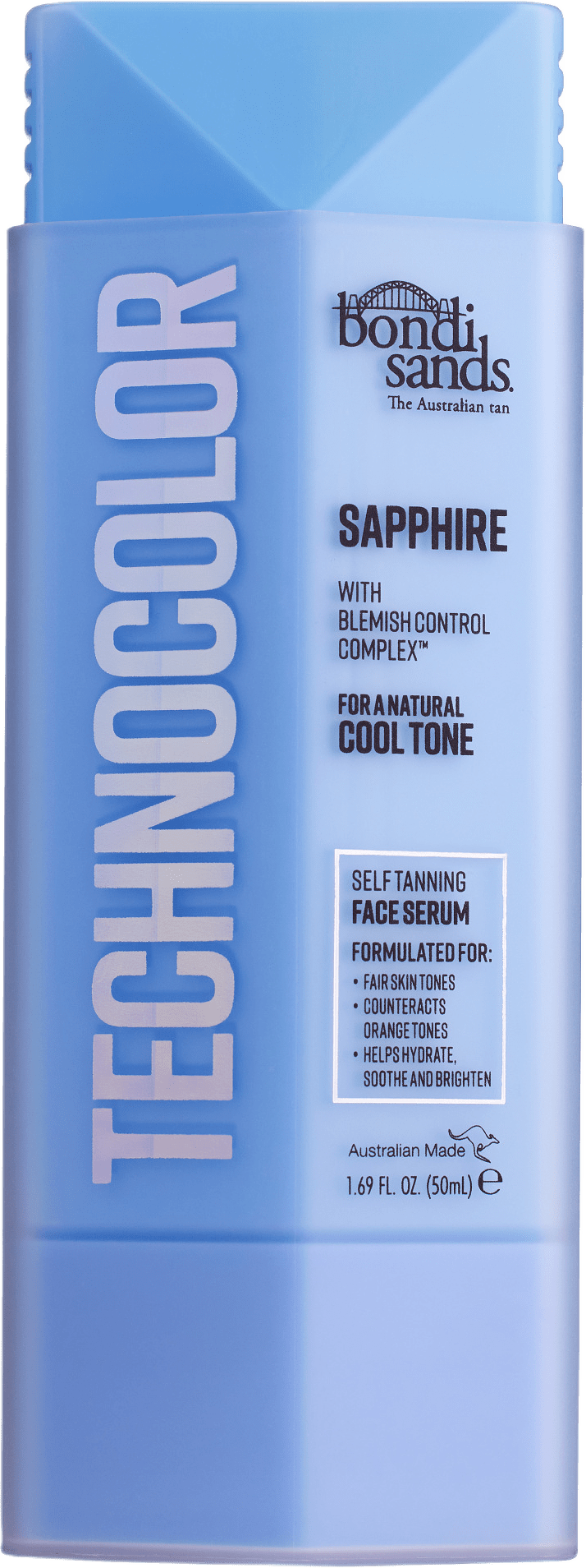 Sapphire:Formulerad med färgteknologin Dermachromatic™ Colour Technology för ljusare hudtoner för att åstadkomma en naturlig, svalt tonad solbränna. Med Blemish Control Complex™ som hjälp för att hindra utslag och blemmor, blandar ansiktsserumet Self Tanning Face Serum hudcentrerad C-vitamin för klarare hy med lindrande kamomill, för att åstadkomma en en ökad utjämning av hyn som skyddar hudbarriären. Dermatologiskt testad. Lämplig för känslig hud. Icke-komedogen - täpper inte till porerna. Ingen tillsatt doft.