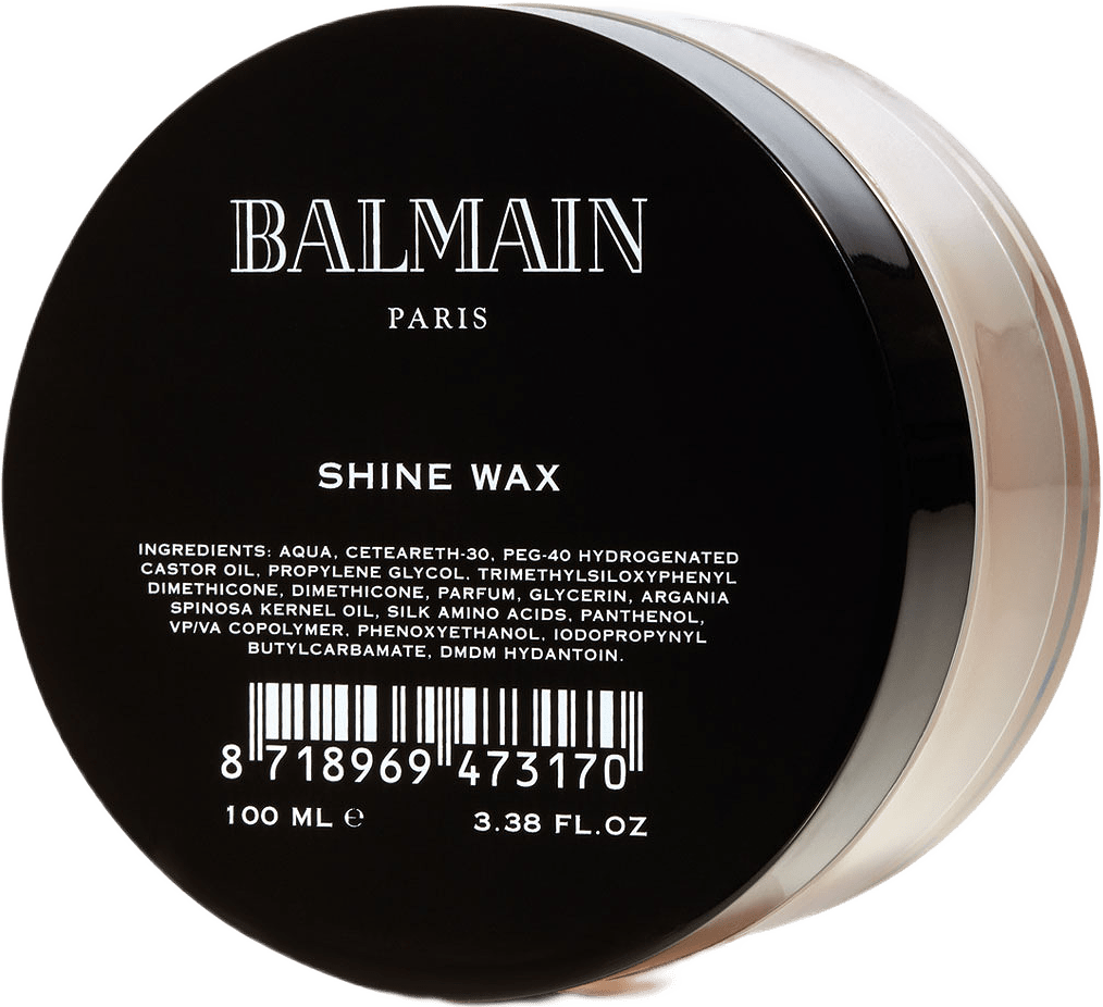 Aqua Ceteareth-30 PEG-40 Hydrogenated Castor Oil Propylene Glycol Trimethylsiloxyphenyl Dimethicone Dimethicone Parfum Glycerin Argania Spinosa Kernel Oil Silk Amino Acids Panthenol VP/VA Copolymer Phenoxyethanol Iodopropynyl Butylcarbamate DMDM HydantoinBALMAIN Paris Hair Couture Shine Hair Wax, 100 ml