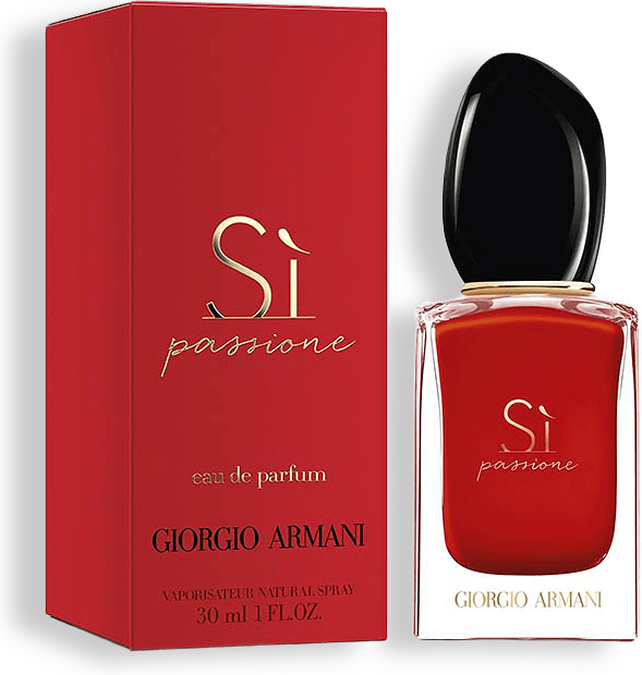 Sì Passione är en ny och stark version av den klassiska Armani-doften, och den adderar en ny dimension till Giorgio Armanis feminina doftpersonlighet – med hans egna ord ”en oemotståndlig kombination av elegans, styrka och självständighet”. Sì Passione innehåller samma hjärtnot som den klassiska Sì-doften – Jungle Essence ™-nektar med svartvinbär kombinerat med ett sprudlande, lekfullt inslag av päron. Sì Passione kombinerar intensiv vanilj med blomsternoter av ros, heliotrop och jasmin för att skapa en sensuell, fruktigt blommig doft som utstrålar både feminin styrka och skörhet. I hjärtat av doften återfinns noter av cederträ och moderna Orcanox™-noter med inslag av ambra och trä vilka ger mognad och karaktär som speglar en djärv känsla och framkallar äkta passion. Den röda färgen är en symbol för Sì Passiones attityd och essens. ”Rött som symboliserar vitalitet, rött som utstrålar passion. Rött som önskar dig välgång och positivitet”, förklarar Giorgio Armani. Rött är också kärlekens och passionens färg – en passion som får ditt hjärta att slå snabbare. En ny känsla, en ny femininitet, en ny personlighet. En ny passion.