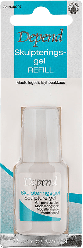 Varning: Cyanoakrylat. Fara. Fäster snabbt på hud och ögon. Förvaras oåtkomligt för barn. Orsakar allvarlig ögonirritation. Irriterar huden. Kan orsaka irritation i luftvägarna. VID KONTAKT MED ÖGONEN: Skölj försiktigt med vatten i flera minuter. Ta ur eventuella kontaktlinser om det går lätt. Fortsätt att skölja. Vid bestående ögonirritation: Sök läkarhjälp. Om hudens ytor klistras fast, dra ej utan använd en acetonbaserad remover. Använd aldrig lösnaglar om dina naturliga naglar är tunna, skadade eller infekterade. Undvik hetta. Nagellim kan fläcka eller skada tyg. Används ihop med Depends Gelaktivator. Var fjortonde dag bör du applicera ny Gel och Aktivator intill nagelroten för att fylla ut utväxten. Detta gör du på samma sätt som du skulpterar dina naglar. Hur många lager du behöver applicera bedömer du själv. När övergången är jämn har du uppnått ett bra resultat.