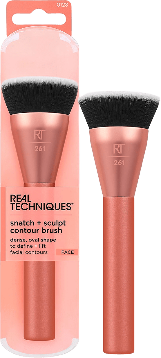 Real Techniques Snatch + Sculpt Contour Makeup Brush har ett tätt, ovalt borsthuvud som följer kindbenet perfekt för en naturlig definition av ansiktets konturer. Snatch + Sculpt Contour Makeup Brush 261 fungerar med flytande-, kräm- och puderprodukter för contouring och bronzing. Tack vare den ovala kurvade formen på borsthuvudet uppnår du maximal upptagning och precision vid applicering – den här designen är en riktig vinnare för din dagliga rutin. Den här sminkborsten kommer med UltraPlush-teknologi: högkvalitativa, täta borststrån för maximal upptagning och applicering. För att din sminkborste ska hålla längre rekommenderas det att den rengörs en gång i veckan. Snatch + Sculpt Contour Makeup Brush är 100% vegansk och cruelty-free.