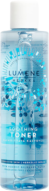 AQUA (WATER), GLYCERIN, SODIUM PCA, VACCINIUM MYRTILLUS (BILBERRY) FRUIT JUICE, PHENOXYETHANOL, CAPRYLYL GLYCOL, PROPANEDIOL, ALLANTOIN, PEG-40 HYDROGENATED CASTOR OIL, SORBIC ACID, SODIUM HYDROXIDE, ETHYLHEXYLGLYCERIN, SODIUM HYALURONATE. DENNA INGREDIENSLISTA KAN HA FÖRÄNDRATS. VAR VÄNLIG OCH KONTROLLERA ALLTID INGREDIENSLISTAN FRÅN FÖRPACKNINGEN PÅ DEN PRODUKT DU KÖPT.Lumene Soothing Toner