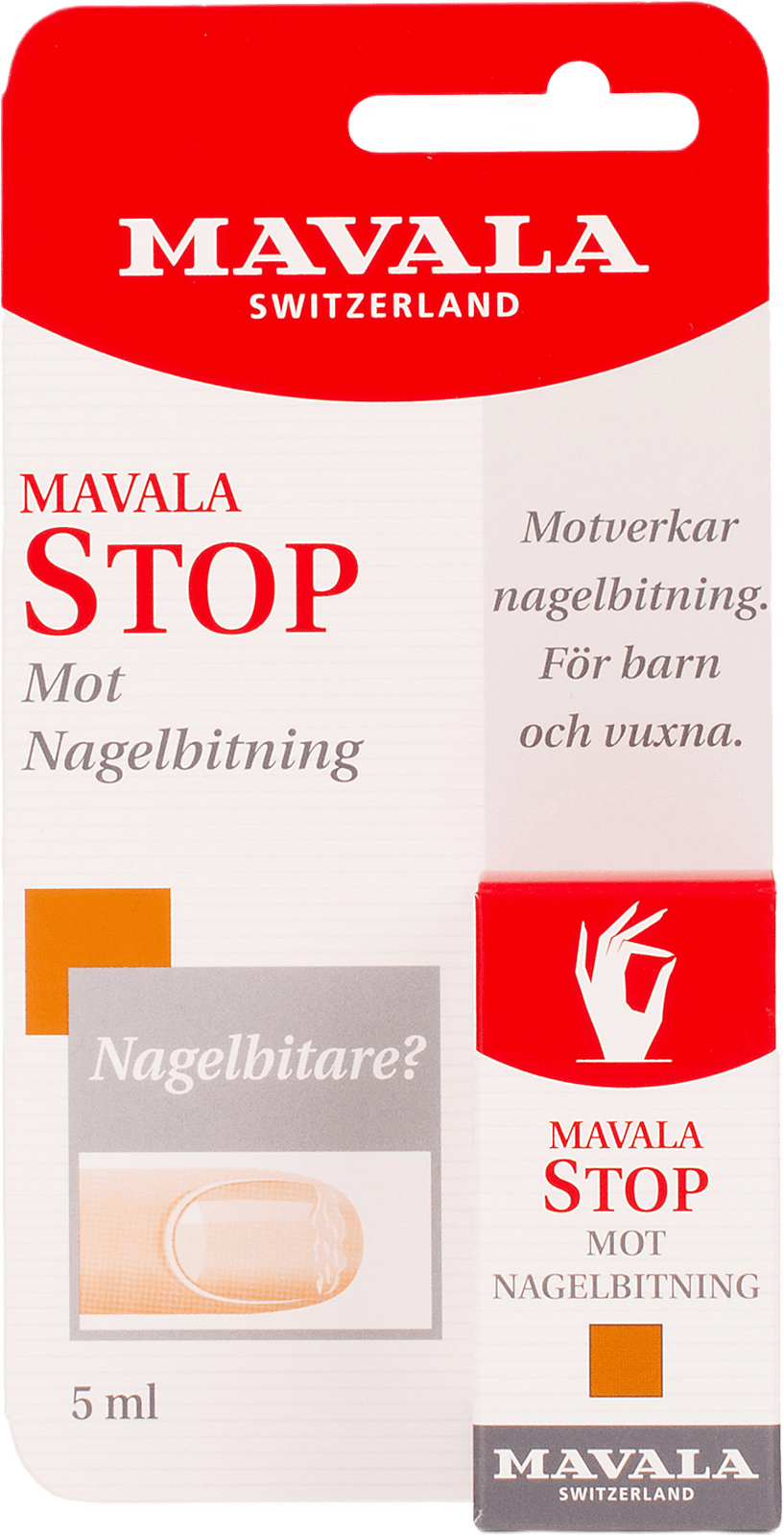 Ethyl Acetate, Isopropyl Alcohol, Butyl Ester of PVM/MA Copolymer, Adipic Acid/Neopentyl Glycol/Trimellitic Anhydride Copolymer, Isopropyl Ester of PVM/MA Copolymer, Butyl Acetate, Alcohol Denat., N-Butyl Alcohol, Denatonium Benzoate, Acetyl Tributyl Citrate, Benzophenone-3, Water (Aqua), Violet 2 (CI 60725). [F903/4]Mavala Stop mot nagelbitning, 5 ml, 5 ML