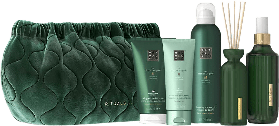 The Ritual of Jing Foaming Shower Gel : Tryck ut en liten mängd gel i handen och tillsätt vatten. Gelen förvandlas till en fyllig, avkopplande skumsensation. The Ritual of Jing Body Cream : Applicera den fylliga krämen på huden dagligen och massera in på hela kroppen. The Ritual of Jing Night Hand & Foot Mask : Applicera på rena händer eller fötter före läggdags, 1–2 gånger i veckan. Massera handryggen och cirkla sedan med tummen över handflatan. Knåda eller tryck på vardera foten och avsluta med att trycka 5–10 sekunder på solarplexus-punkten för att frigöra spänningar. The Ritual of Jing Home Perfume : Avlägsna korken för att använda sprayflaskan. Spraya bort från ansiktet och kroppen. Håll behållaren upprätt och spraya med cirkelrörelser i luften i rummet. Förvara produkten i upprätt läge. The Ritual of Jing Mini Fragrance Sticks : Placera minidoftstickorna i flaskan och tvätta händerna ordentligt efteråt.