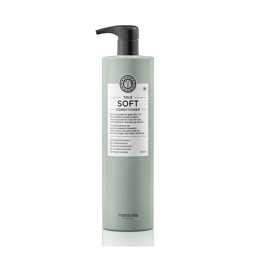 Aqua, Cetearyl Alcohol, PPG-3 Benzyl Ether Myristate, Behentrimonium Chloride, Argania Spinosa Kernel Oil, Polyglyceryl-3 Polyricinoleate, Moringa Pterygosperma Seed Oil, Stearamidopropyl Dimethylamine, Phyllostachys Nigra Leaf Extract, Amodimethicone/Morpholinomethyl Silsesquioxane Copolymer, Lactic Acid, Trideceth-5, Glycerin, Sodium PCA, Cetrimonium Chloride, Dimethiconol, Olea Europaea Fruit Oil, Dimethicone, Sodium Chloride, Propanediol, Pentaerythrityl Tetra-di-t-butyl Hydroxyhydrocinnamate, Quaternium-95, Dehydroacetic Acid, Benzoic Acid, Phenoxyethanol, Butylphenyl Methylpropional, Parfum, CI 47005, CI 61570, CI 61585Maria Nila True Soft Conditioner