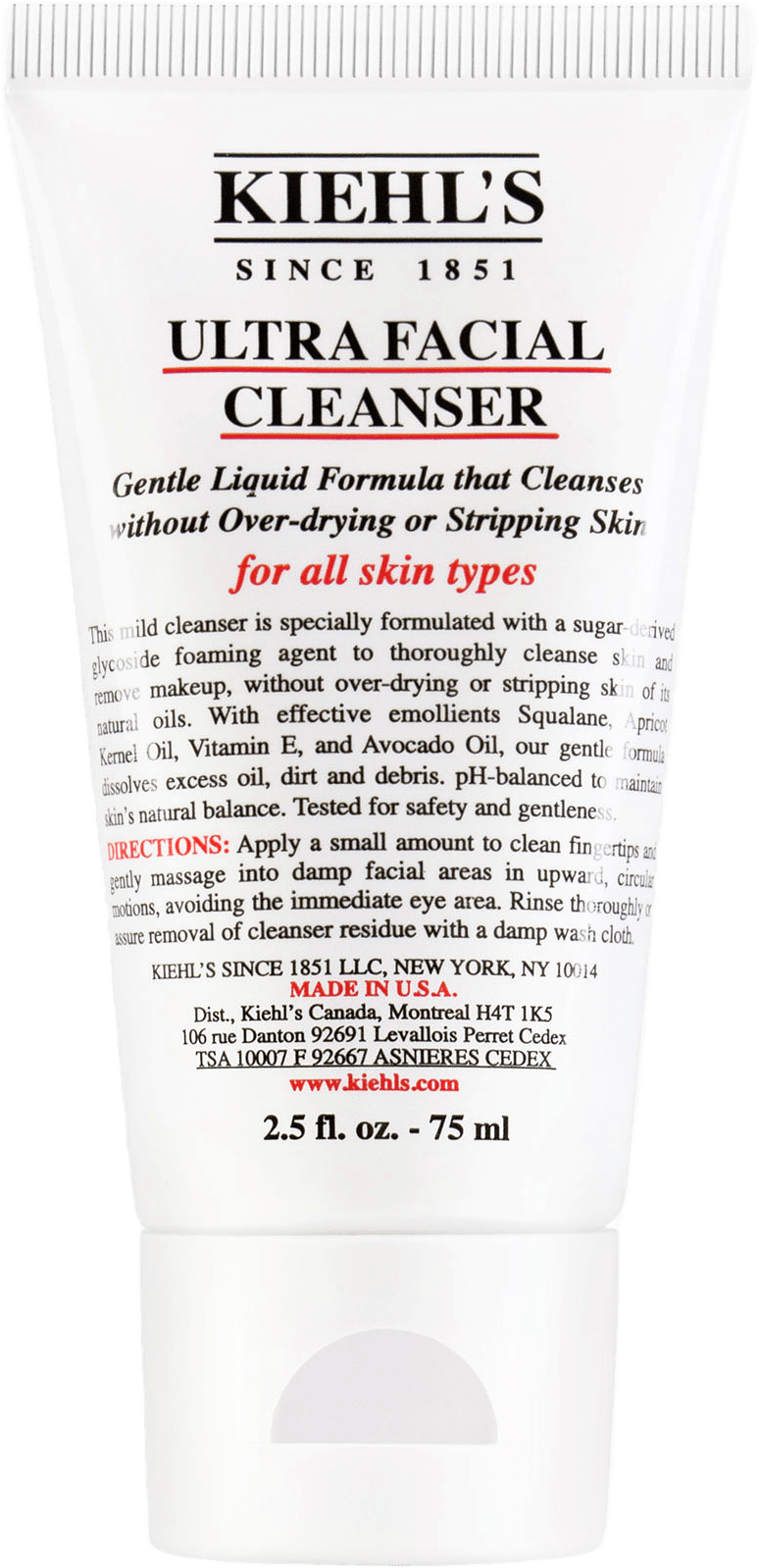 Kiehl's Ultra Facial Cleanser. Denna särskilt utvecklade skonsamma, löddrande rengöring hjälper till att avlägsna orenheter utan att torka ut huden. Utöver att lösa upp överskottssebum och orenheter hjälper denna pH-balancerade ansiktsrengöring till att bevara hudens naturliga fuktbalans. Vår skonsamma ansiktsrengöring innehåller squalane, aprikoskärneolja, E-vitamin och avokadoolja och passar alla hudtyper.