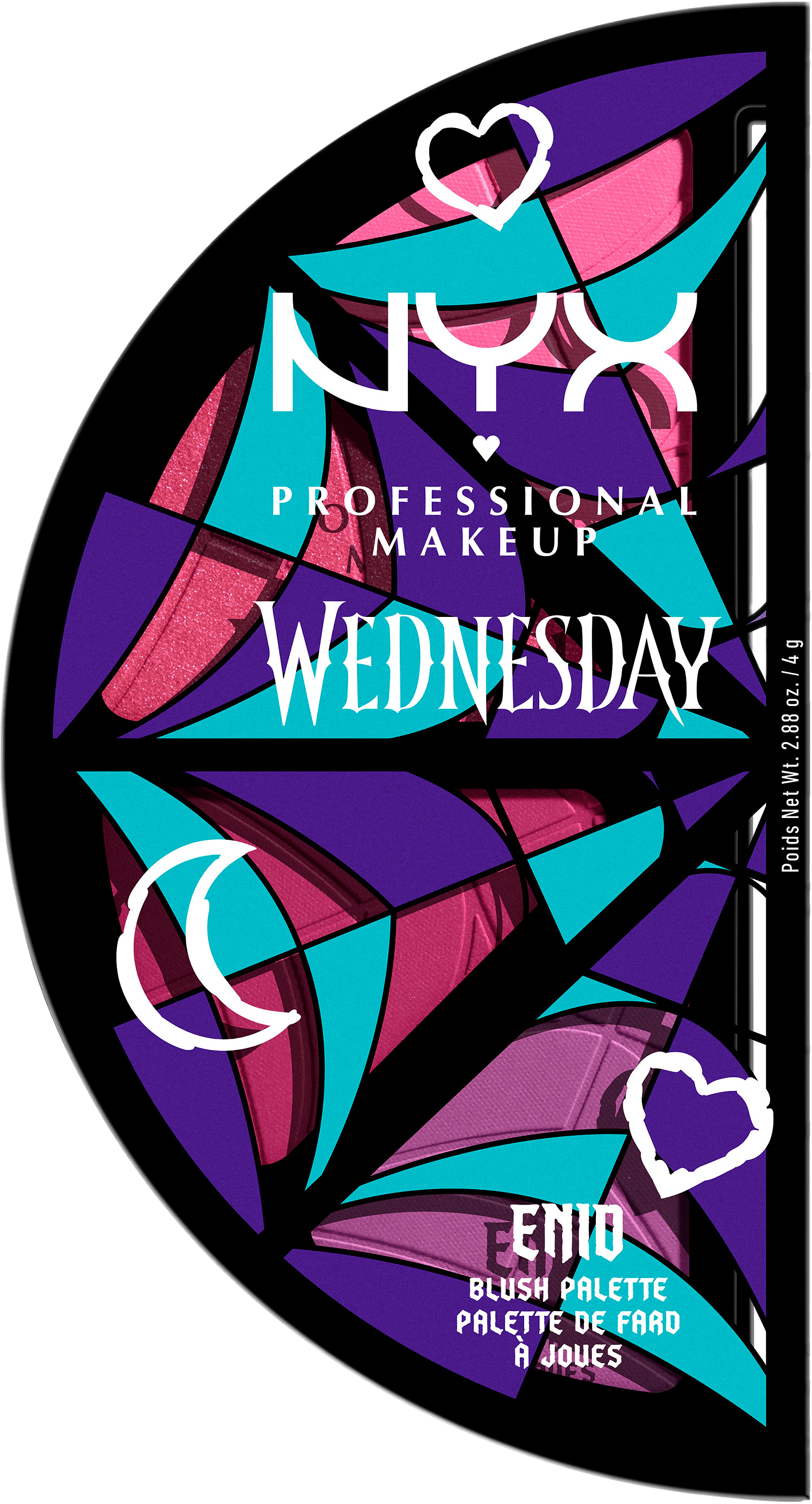 2061886 1 - INGREDIENTS: SYNTHETIC FLUORPHLOGOPITE • TALC • SILICA • CI 77891 / TITANIUM DIOXIDE • MAGNESIUM STEARATE • TRIETHOXYCAPRYLYLSILANE • DIMETHICONE • CAPRYLIC/CAPRIC TRIGLYCERIDE • ETHYLHEXYL PALMITATE • ALUMINUM HYDROXIDE • COLOPHONIUM / ROSIN / COLOPHANE • CAPRYLYL GLYCOL • TOCOPHERYL ACETATE • PHENOXYETHANOL • CI 15850 / RED 7 LAKE • CI 45410 / RED 28 LAKE • CI 73360 / RED 30 • CI 77007 / ULTRAMARINES • CI 77491 / IRON OXIDES (F.I.L. N70041803/1). 2061887 2 - INGREDIENTS: MICA • CI 77891 / TITANIUM DIOXIDE • MAGNESIUM STEARATE • ISONONYL ISONONANOATE • ETHYLHEXYL PALMITATE • DIMETHICONE • DIISOSTEARYL MALATE • OCTYLDODECYL STEAROYL STEARATE • CI 77491 / IRON OXIDES • TIN OXIDE • ALUMINUM HYDROXIDE • COLOPHONIUM / ROSIN / COLOPHANE • CAPRYLYL GLYCOL • SYNTHETIC WAX • POLYBUTENE • TOCOPHERYL ACETATE • PHENOXYETHANOL • CI 15850 / RED 7 LAKE • CI 73360 / RED 30 (F.I.L. N70045136/1). 2061888 2 - INGREDIENTS: SYNTHETIC FLUORPHLOGOPITE • TALC • CI 15850 / RED 7 LAKE • CI 77007 / ULTRAMARINES • SILICA • MAGNESIUM STEARATE • DIMETHICONE • CAPRYLIC/CAPRIC TRIGLYCERIDE • ETHYLHEXYL PALMITATE • TRIETHOXYCAPRYLYLSILANE • ALUMINUM HYDROXIDE • CAPRYLYL GLYCOL • TOCOPHERYL ACETATE • PHENOXYETHANOL • CI 77492 / IRON OXIDES • CI 77891 / TITANIUM DIOXIDE (F.I.L. N70045137/1). 2061922 - INGREDIENTS: SYNTHETIC FLUORPHLOGOPITE • TALC • CI 77742 / MANGANESE VIOLET • CI 77007 / ULTRAMARINES • SILICA • TRIETHOXYCAPRYLYLSILANE • DIMETHICONE • MAGNESIUM STEARATE • CAPRYLIC/CAPRIC TRIGLYCERIDE • ETHYLHEXYL PALMITATE • CI 15850 / RED 7 LAKE • COLOPHONIUM / ROSIN / COLOPHANE • CAPRYLYL GLYCOL • TOCOPHERYL ACETATE • PHENOXYETHANOL (F.I.L. N70041808/1).NYX Professional Makeup Wednesday Stained Glass Rougepalett