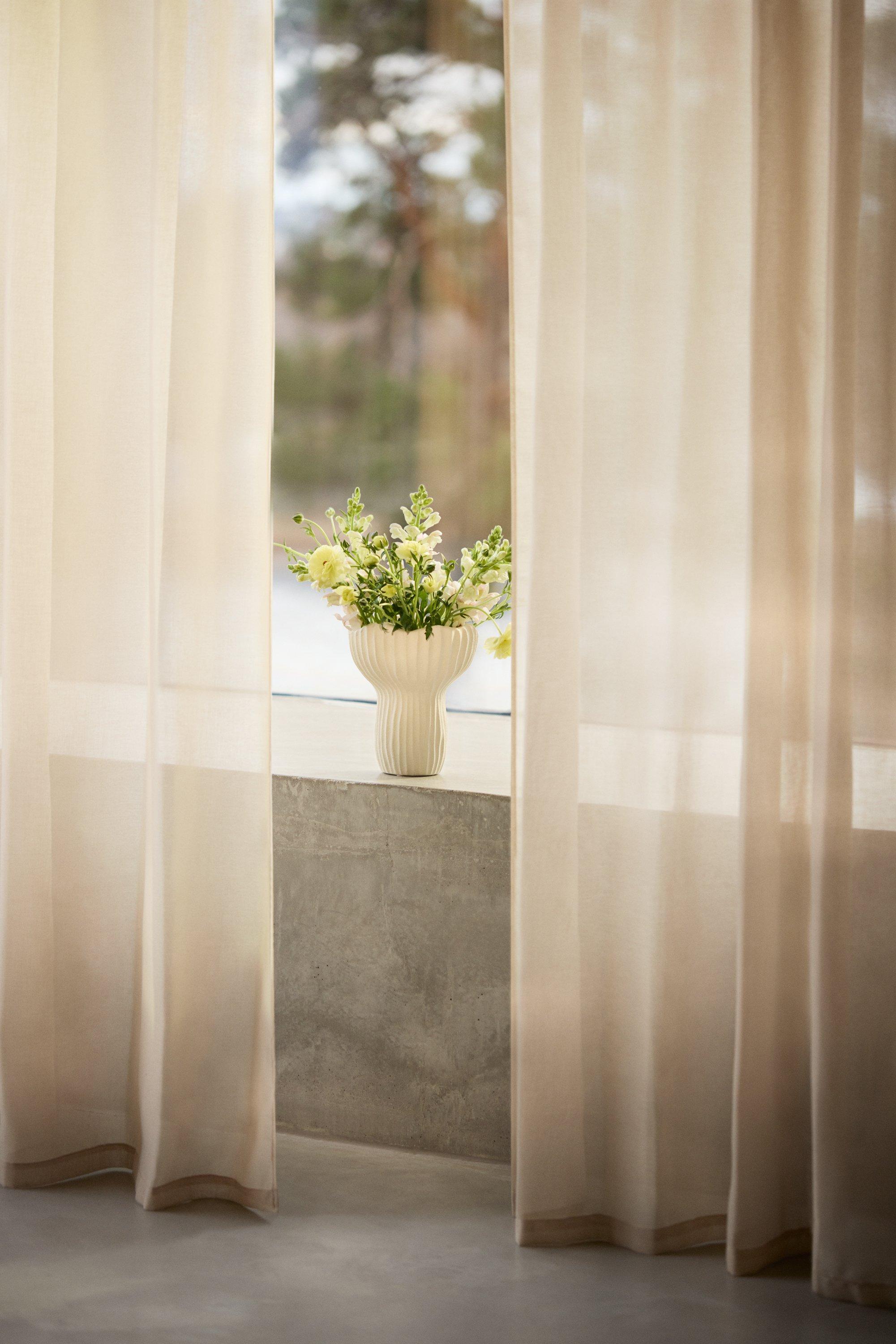 Vill du att rummet ska vara maximalt ljust och luftigt? Då ska du satsa på riktigt skira gardiner. Det ger ett visst insynsskydd utan att hindra utsikten, vilket är en ypperlig lösning för stora fönsterpartier, som innersta lager bakom tyngre gardiner eller varför inte sätta upp som diskret rumsavdelare?