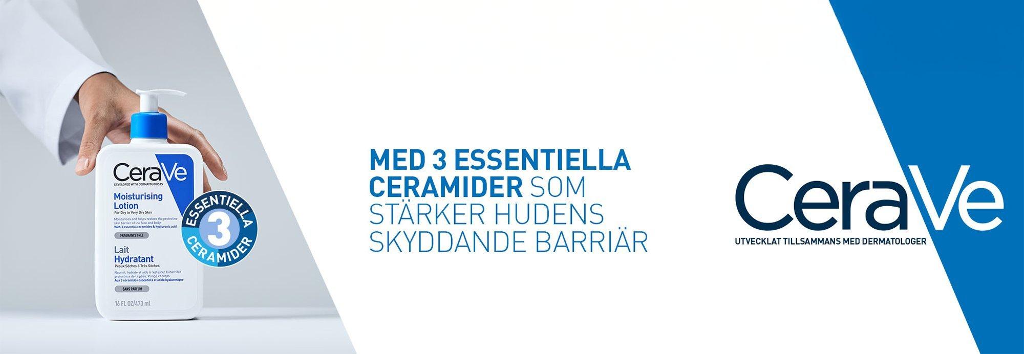 Känn skillnad med CeraVe! En serie för både ansikte och kropp, utvecklad av dermatologer. Hemligheten hittar du i namnet (Cera = ceramider, VE = MVE-teknologi). Serien innehåller tre grundläggande ceramider som bidrar till att stärka hudens naturliga barriär. I kombination med MVE-teknologin, som frigör aktiva ingredienser över tid, hjälper CeraVe huden att bibehålla fukt i upp till 24 timmar.